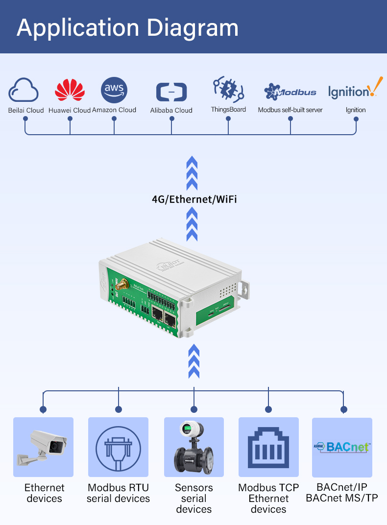 Cloud Platform Integration Seamless docking with public cloud IoT platforms, BMS, Energy Management Systems (EMS), and digital twin/AI analytics platforms.
